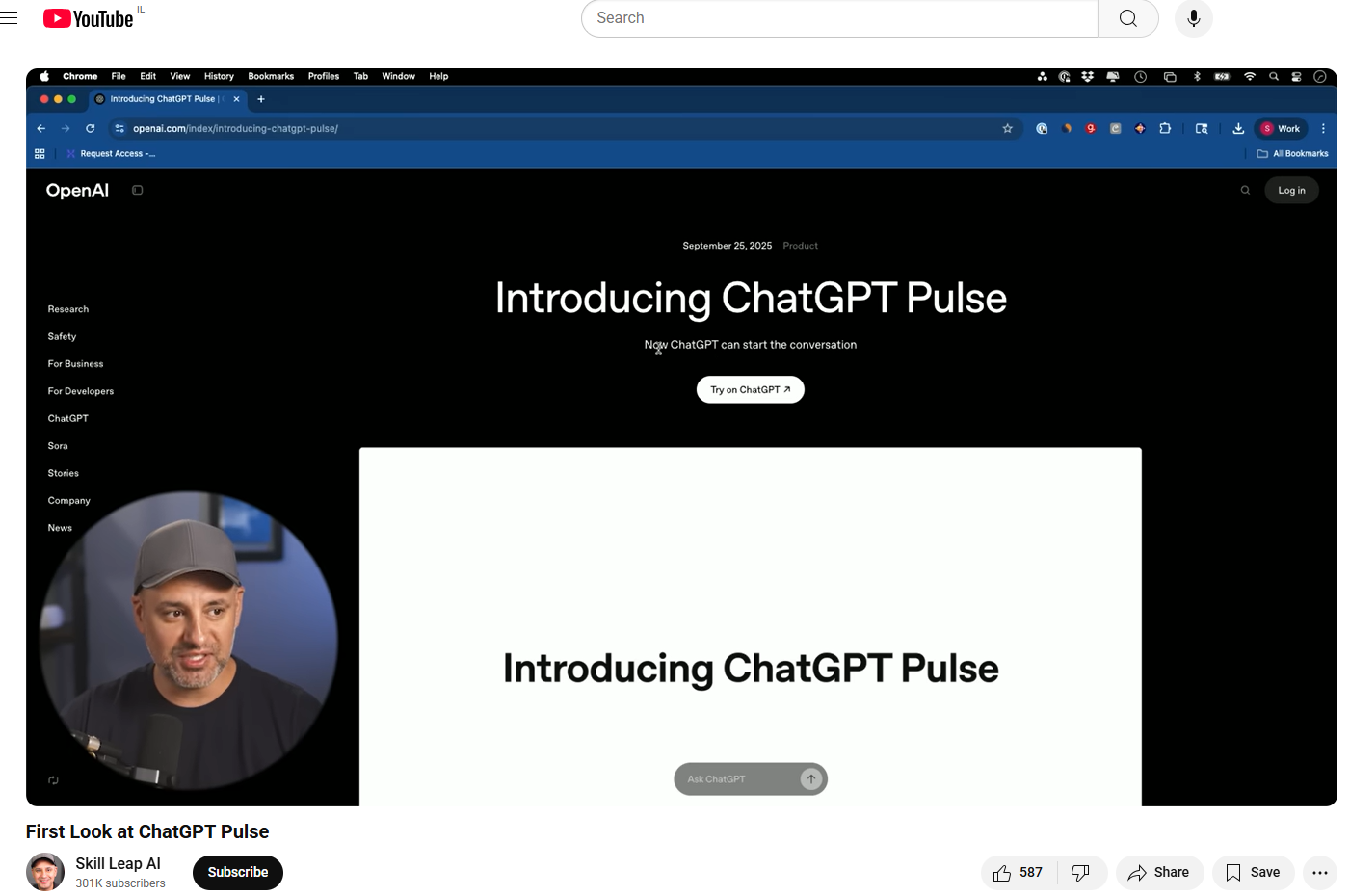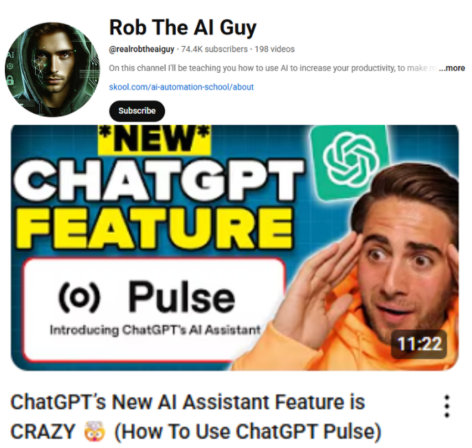 Saj Adib in his YouTube channel Skill Leap AI published a "first look at ChatGPTPulse" video where he walks through ChatGPT Pulse on mobile, explaining its functionality and benefits.